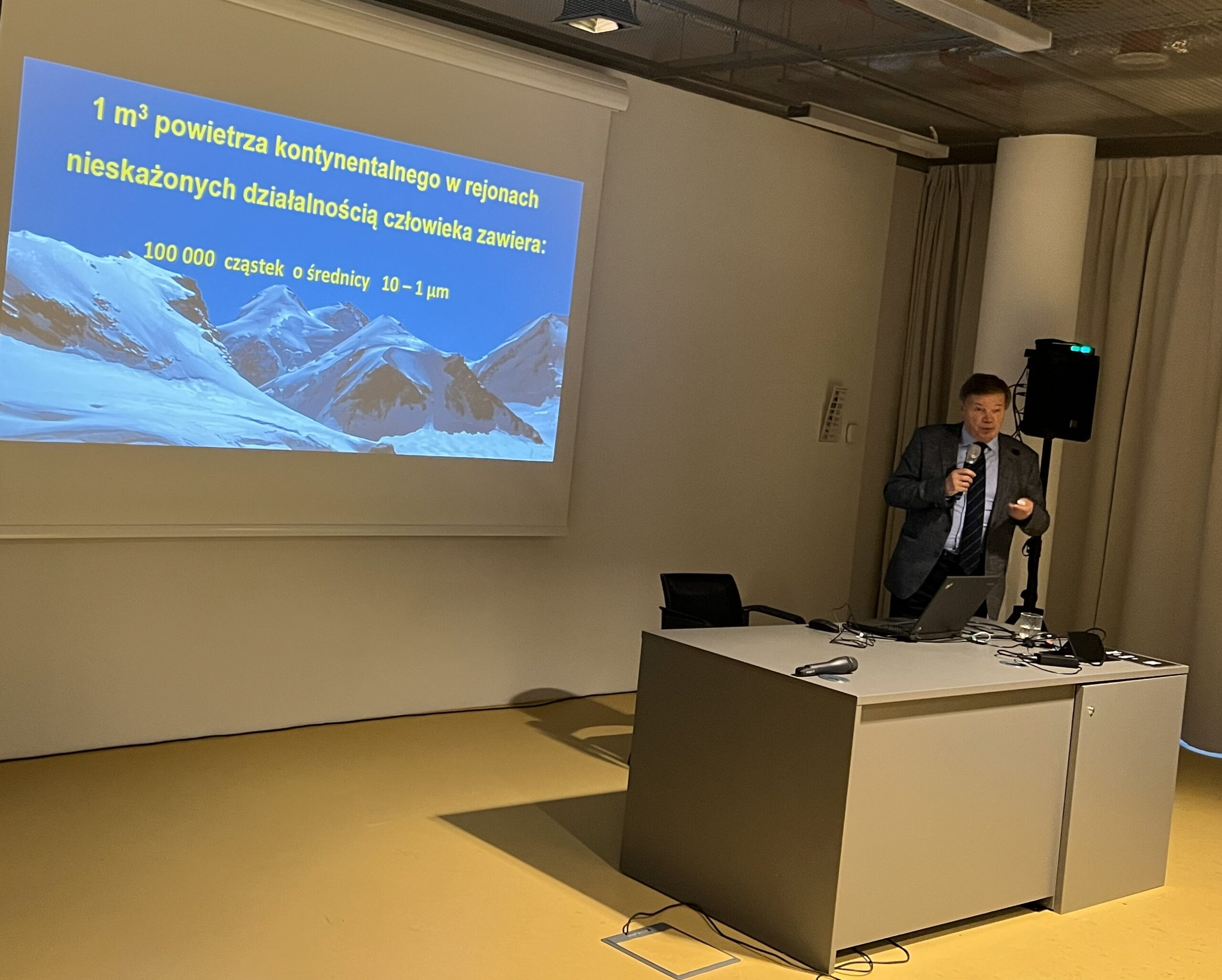 Drugi referat pt. Z komina do płuc – badania składu mineralnego pyłów atmosferycznych przedstawił prof. dr hab. Janusz JANECZEK (UŚ), członek Komisji Nauk Geologicznych Oddziału PAN w Katowicach